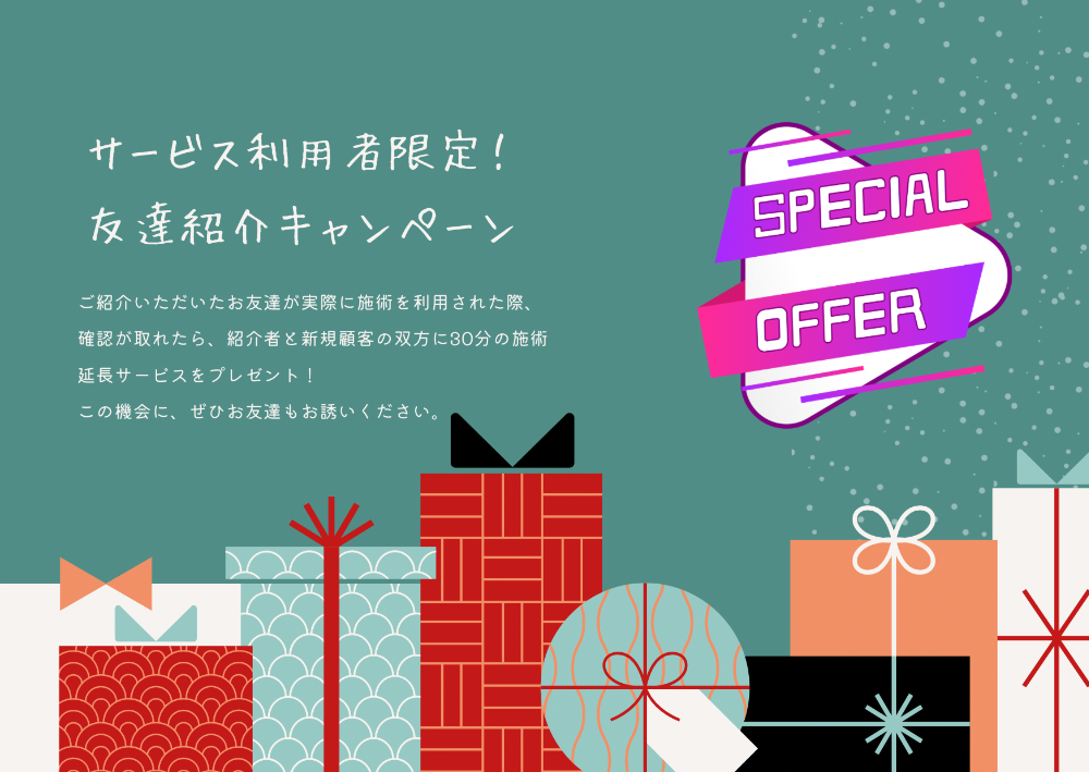 30分の施術延長サービスをプレゼント!